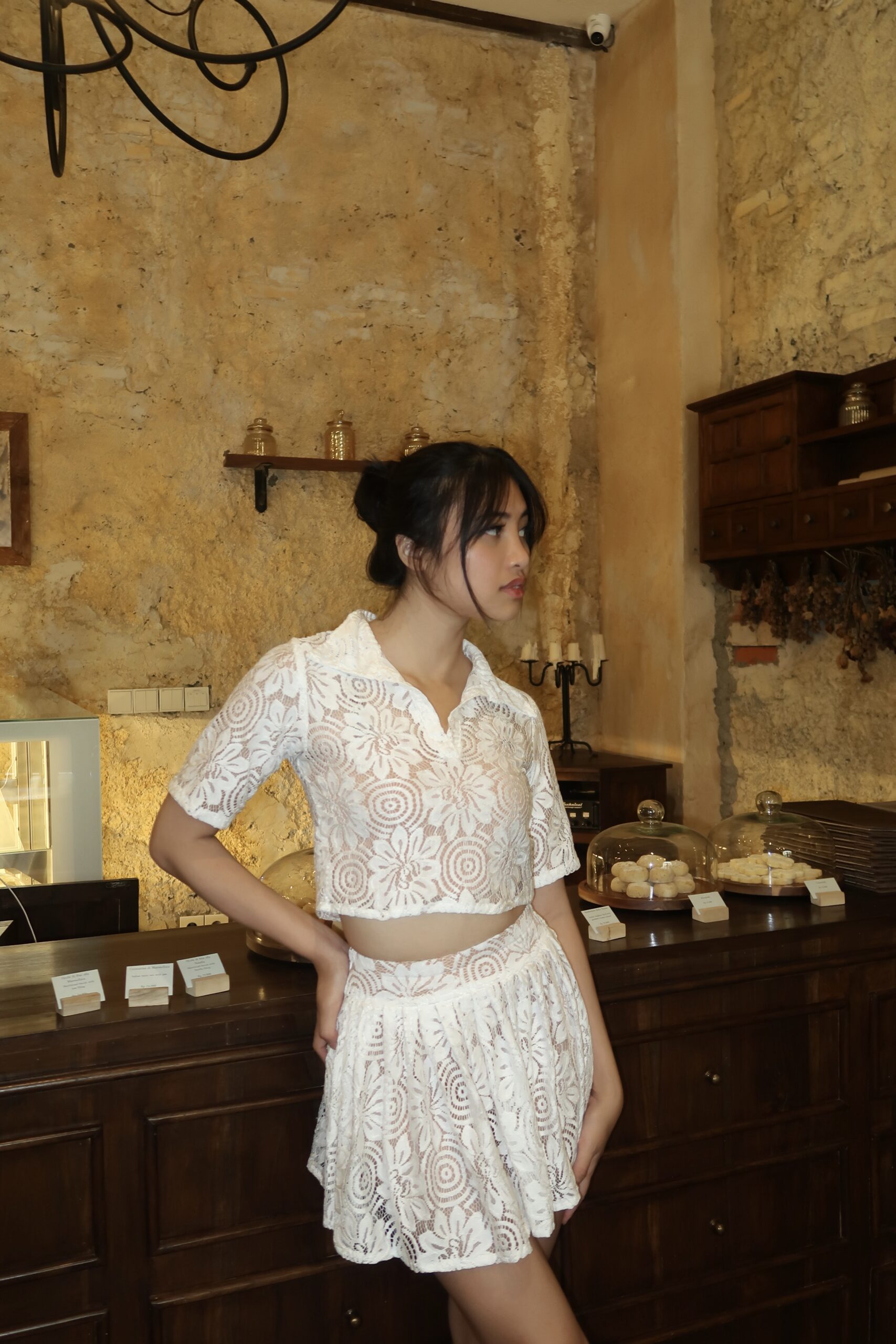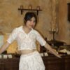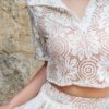 Camile Shirt Set is your go-to for casual occasions with a stylish twist. It features a cropped shirt top made from premium floral cotton lace with a flattering V-neck collar. An inner tube made from soft rayon-spandex ensures all-day comfort. Pair it with the Camile Skort for a perfectly matching look. Available in three colors; black, brown, and white.