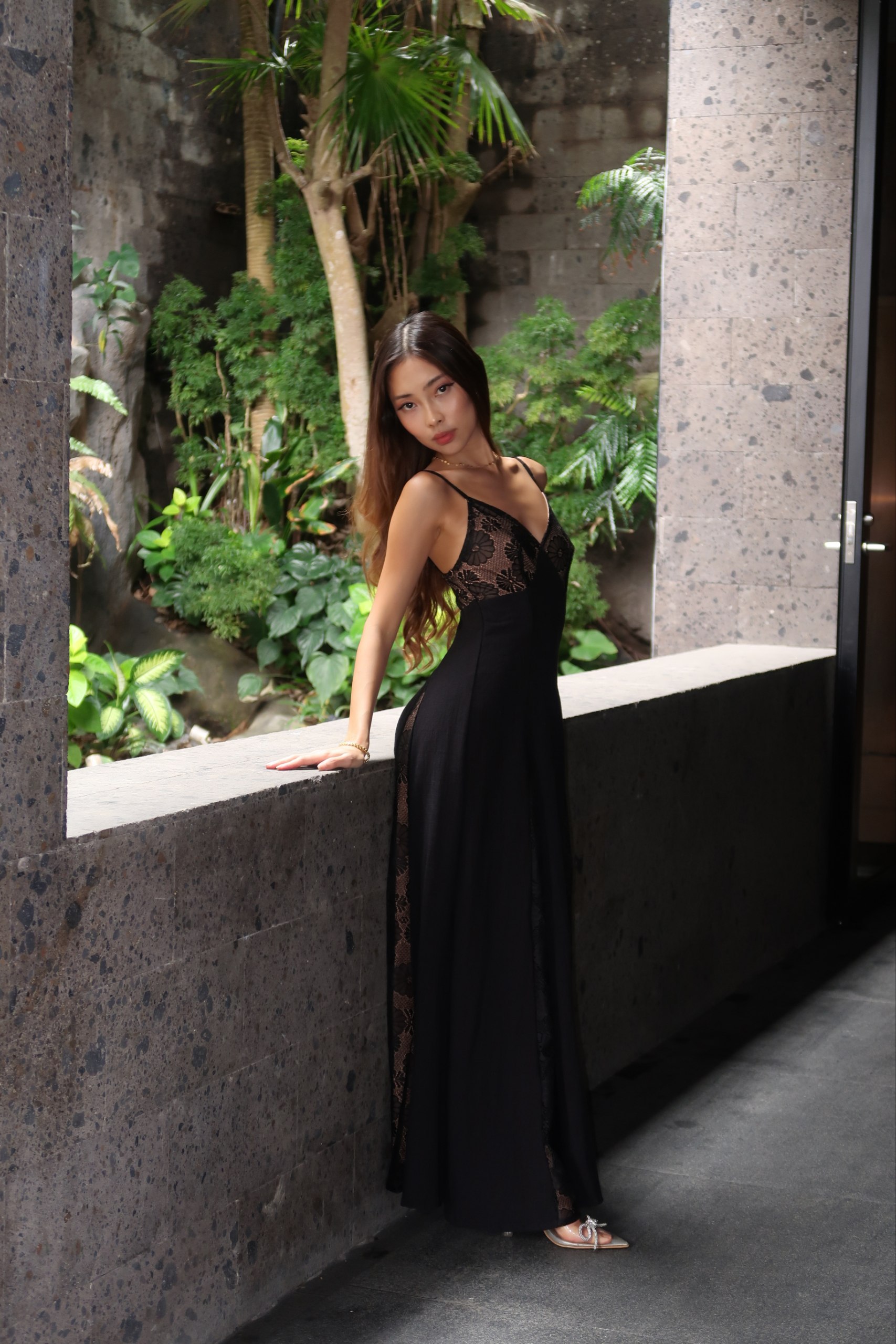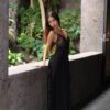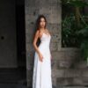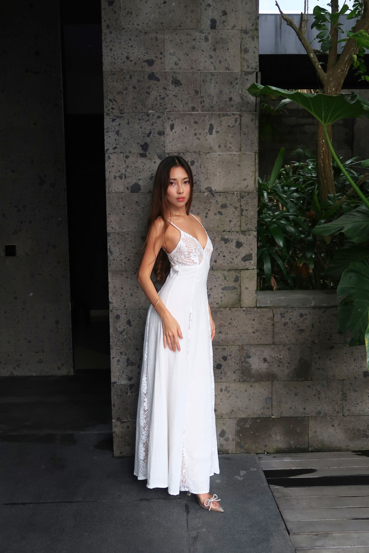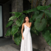 The Lily Long Dress is made from a textured cotton linen fabric featuring thin rouleau straps,