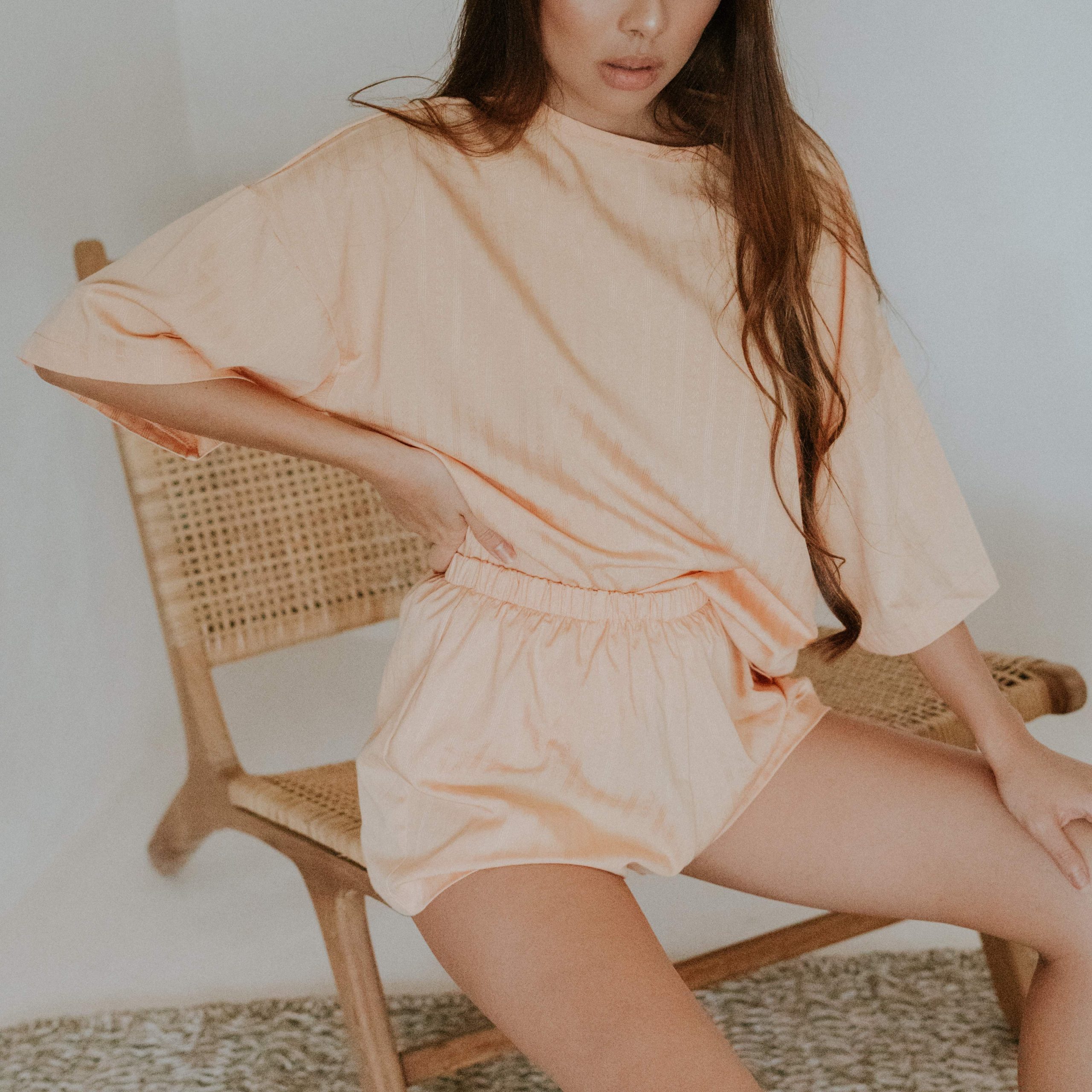 A staple slight stretch cotton sets for every wardrobe! t is a relaxed style featuring 1/2 length sleeves and a rounded neckline.They are a high waisted style featuring an elasticated waist with drawstring and high-low hems.