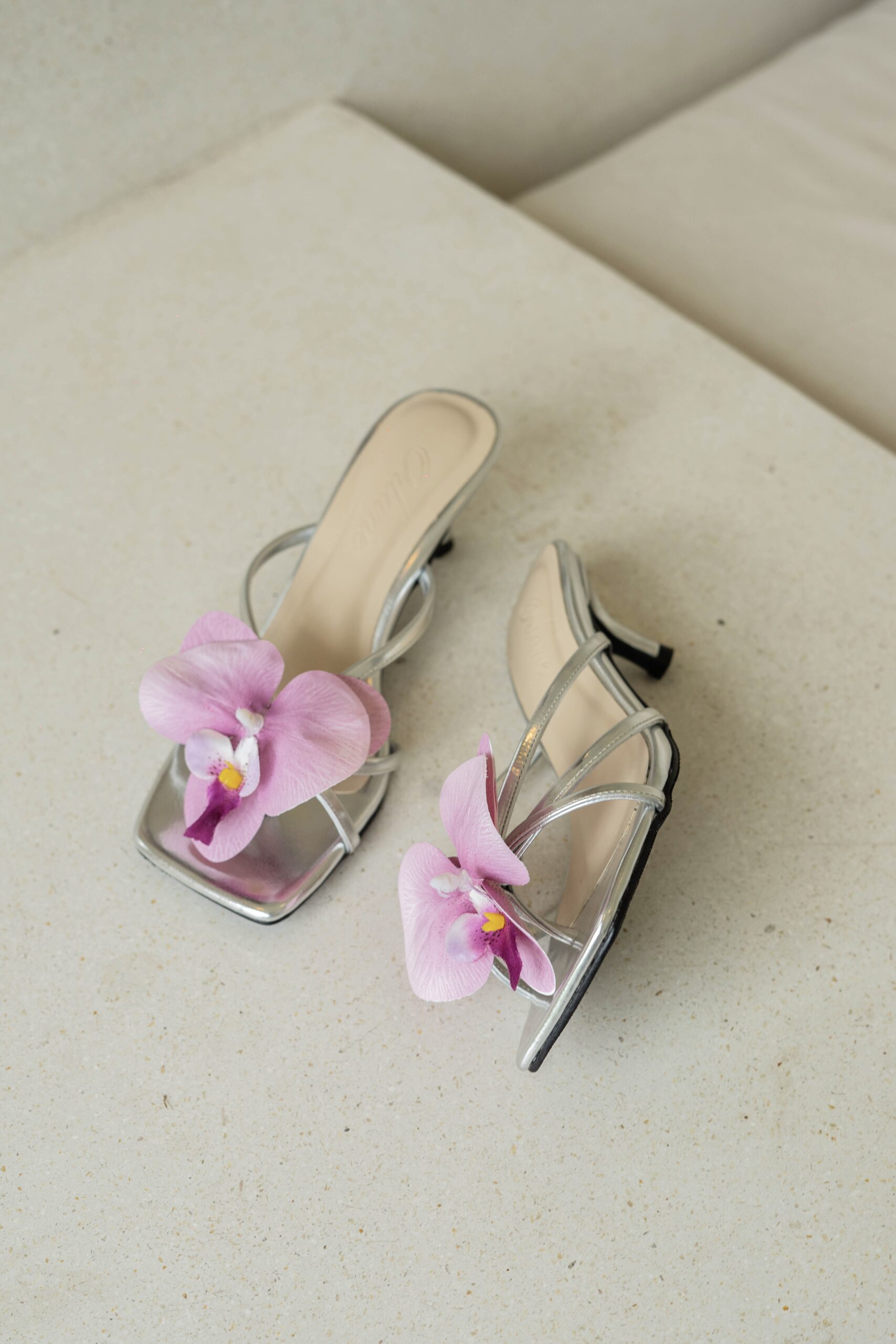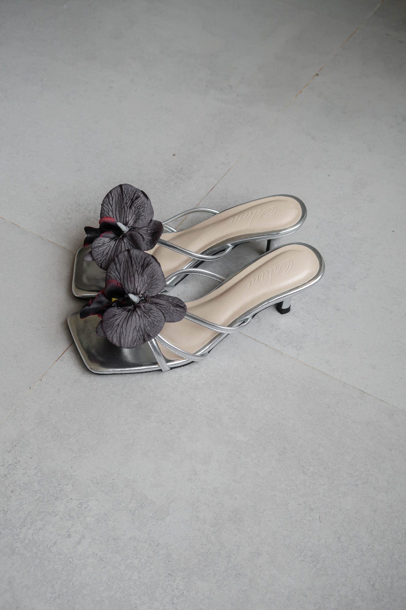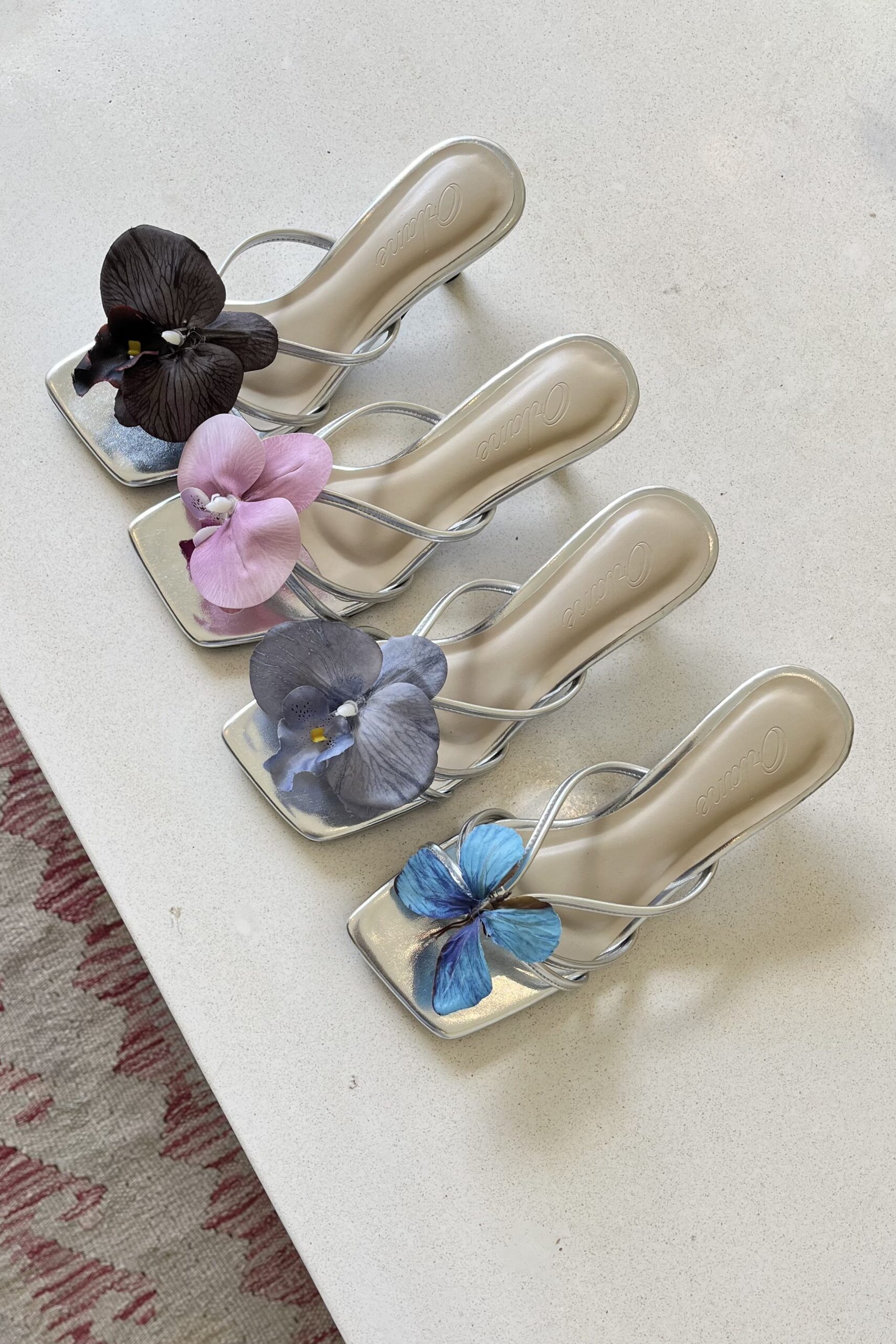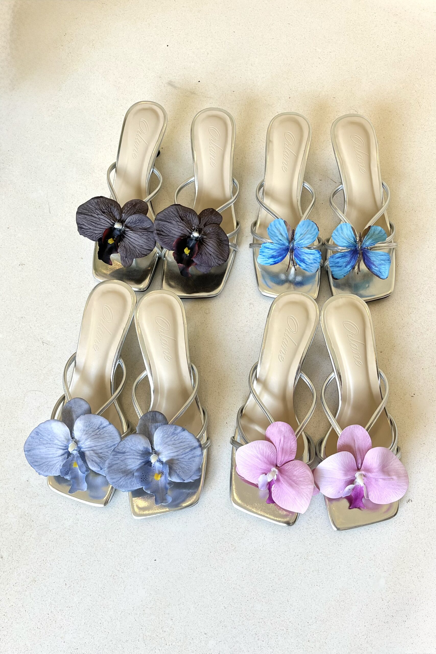 Odyessa heels are high-quality, handmade vintage summer shoes. With a 6 cm stiletto heel and padded for extra comfort, they come in a glossy silver base color. Each pair is beautifully adorned with an attachable artificial orchid flower and butterfly, adding a perfect touch of flair. These distinctive details are designed to make you look both stylish and trendy!